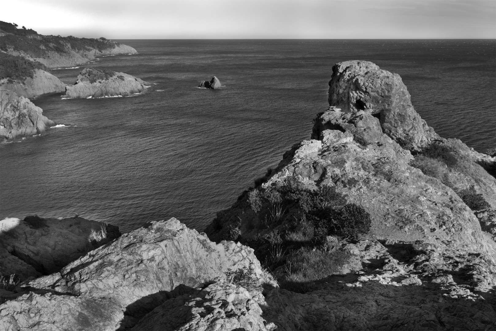 Landschaftsfoto Blick auf die Esterel Küste Landschaftsfoto in schwarz weiß