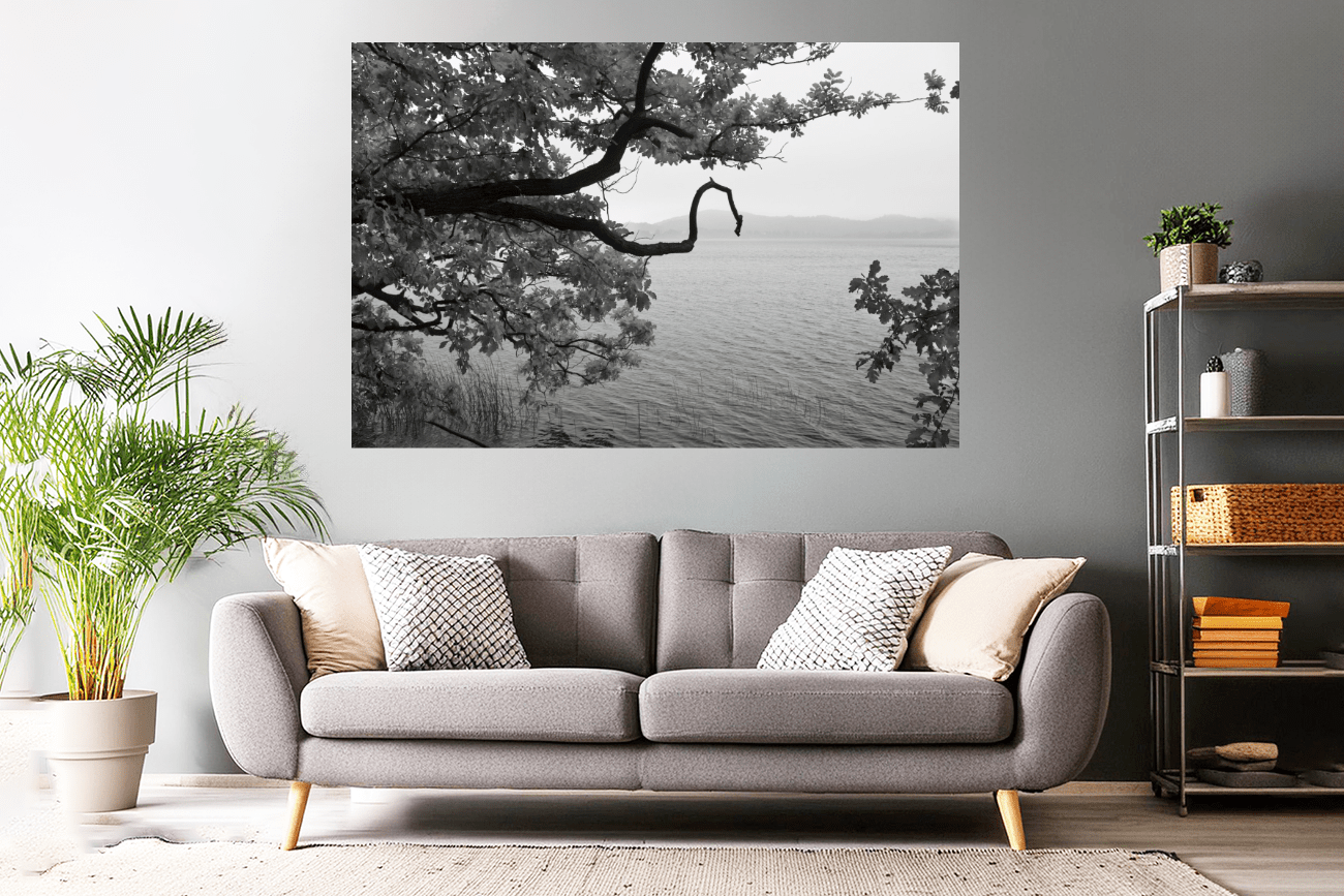 Wandbild – Landschaftsfoto schwarz-weiß | Baumskulptur am Laacher See