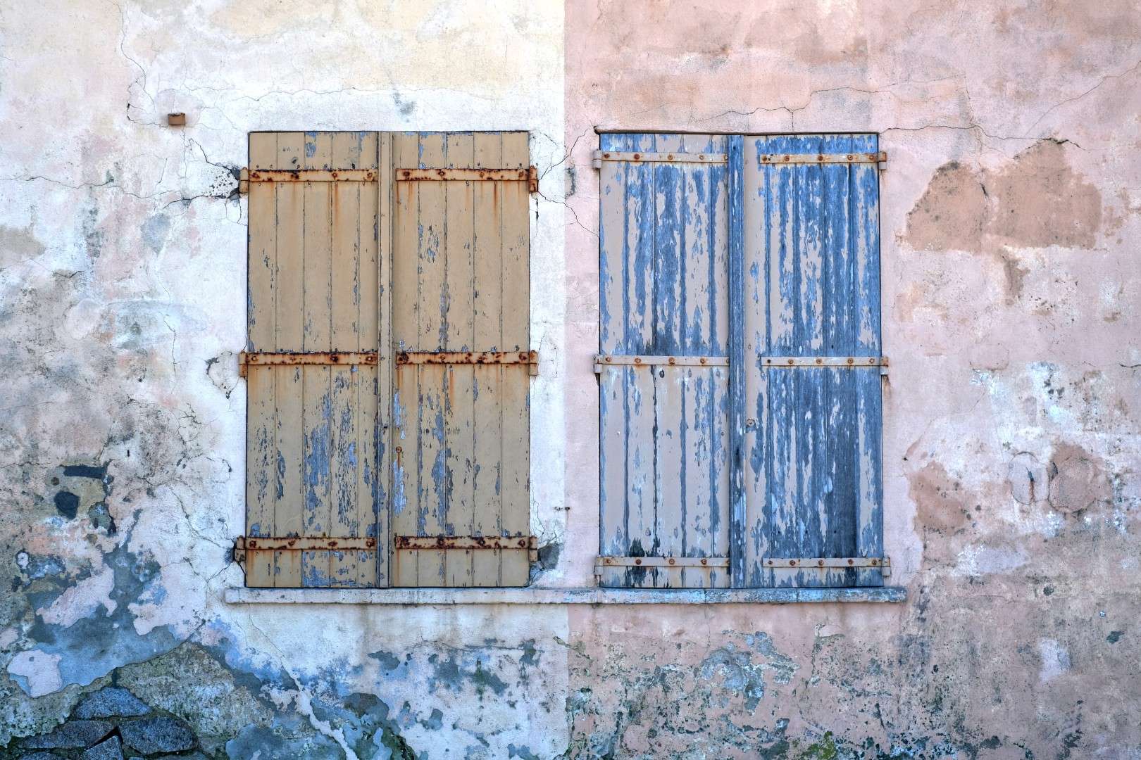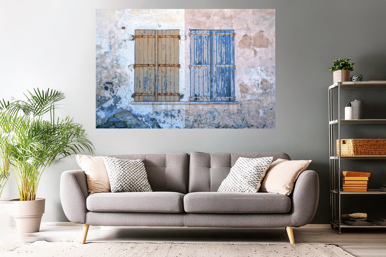 Wandbild – Pastellfarbene Fensterläden in der Provence